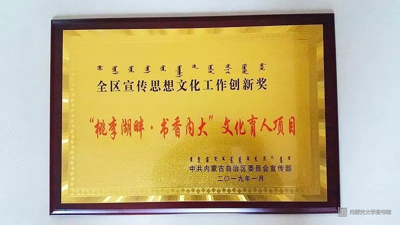 我校“桃李湖畔·书香内大”文化育人项目启动于2015年,由校党委组织实施,旨在聚焦立德树人,坚持守正创新,面向学校“双一流”建设的新要求,以提升人才培养能力为着力点,秉承人文、开放、共享、成长的原则,探索文化育人新模式。从启动以来,累计举办了系列文化活动400余场,充分带动了全校师生的参与热情,师生参与人数累计52500余人,线上参与直播互动人数100000+人。2018年,该项目成果荣获内蒙古大学教学成果一等奖;中国图书馆学会应用案例一等奖;教育部高等学校图书情报工作指导委员优秀案例;被自治区党委宣传部评为校园文化精品项目;入选教育部高校思想政治教育精品项目。目前,吸引了周其凤、林存阳、王子舟等多位学术界名师开办了人文学术讲座,多个主流媒体关注报道,在师生中引发了热烈反响。