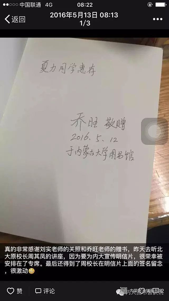 还有图书馆馆长刘实教授、德力格尔教授、闫冰梅教授、张志坚教授、祁兴兰教授等等。和这样庞大的、高档次、高水平的图书馆亲友团的近距离密切交流,多部门多学院多学科各种大咖的亲密接触,等于有了学校教学管理相关各种问题解决的直通车。各种学习生活秘笈、国创校创申请咨询、保研推免政策咨询、校内管理咨询、“内大图书馆读者”微信群互动等等,为顺利完成大学学习生活奠定基础。
