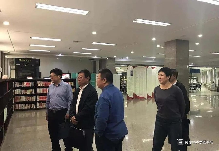 会后张利平书记一行参观了内蒙古大学图书馆党史学习教育馆藏图书文献展。