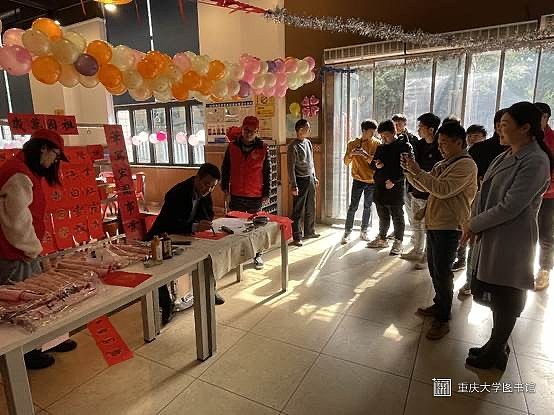 “总把新桃换旧福”,写春联是春节传统文化中最具参与感的传统习俗之一,辞旧迎新,增添节日气氛的同时也体现生活的美好祝愿与企盼。因为疫情防控等原因,今年重庆大学有1000多名学生选择就地过年,学校关注学生的生活和精神文化需求,一贯坚持立德树人导向,将文化艺术教育引入到学习生活的点点滴滴。