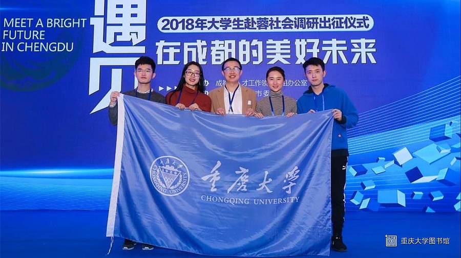 2018年1月22日至26日,由成都市人才领导小组办公室主办、共青团成都市委员会承办的“2018年大学生赴蓉社会调研”活动在成都举行。本次调研活动吸引了来自北京大学、清华大学、上海交通大学、南京大学、重庆大学等全国38所知名高校的79支团队参加。社会调研活动共覆盖成都22个区(市)县,涉及49个产业项目课题。朱韵西、黄凯霖、何欣隆、聂晟、张福卿5名研究生代表重庆大学实践团参加此次活动。