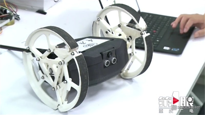 这是来自重庆大学的“小型特种搜救机器人”,因为带着一条类似“魔鬼鱼”蝠鲼的长尾巴,所以研发团队给它起名“陆地魔鬼鱼”。摄像头和超声波传感器为它提供“视觉”和“听觉”,它的“腿”还能根据不同地面进行变形。