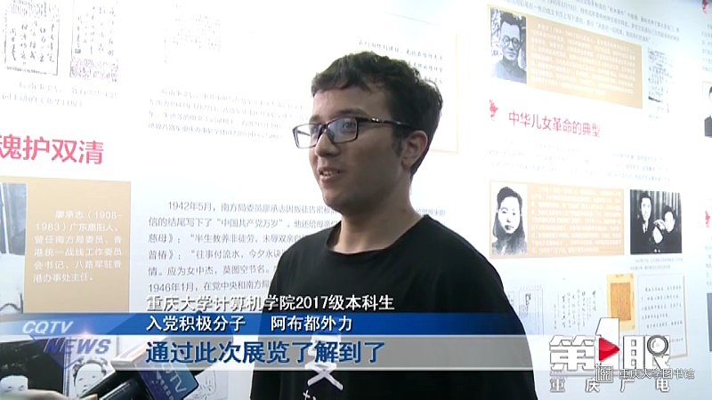 重庆大学计算机学院2017级本科生、入党积极分子阿布都外力是一名维吾尔族的小伙子,他告诉记者,通过此次展览,他了解到了中国共产党是一个什么样的组织,也更加坚定了加入中国共产党的决心。