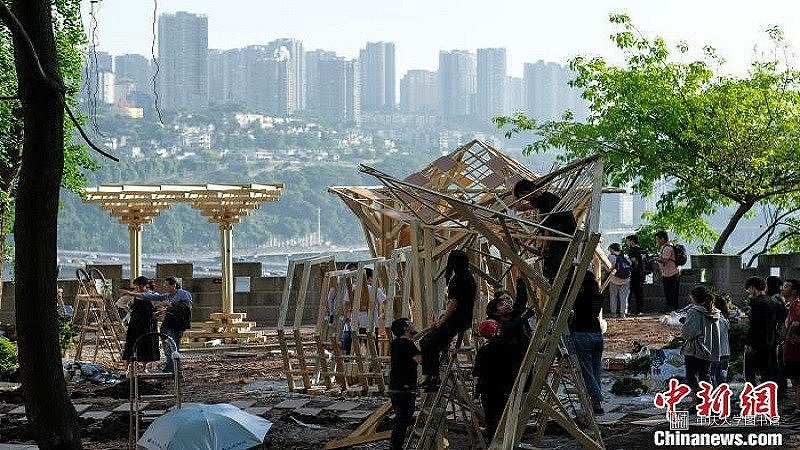 由重庆大学建筑城规学院、渝中区历史文化街区建设管委会联合主办的“第八届重庆大学建造季”29日在重庆市渝中区山城巷传统风貌区举行。“重庆大学建造季”是重庆大学建筑城规学院结合“建筑设计基础”课程教学中“材料与建造”教学环节而举办的实践创新性活动。