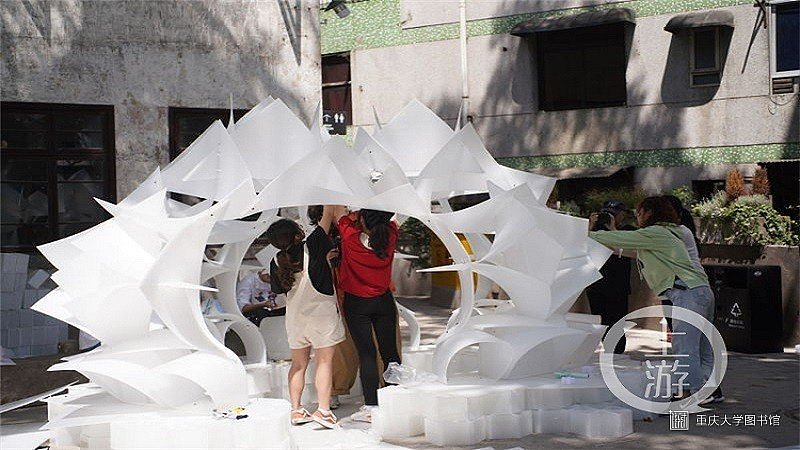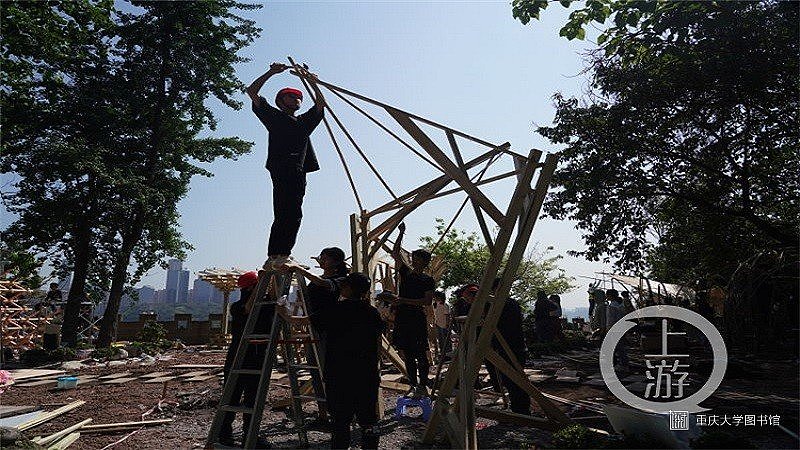 上午9点,参会嘉宾向28支代表队颁发施工证书后,所有的参赛组开始了紧张的搭建工作。上游新闻•重庆晨报记者看到,本次活动分为A、B两个搭建区域,A展区位于山城巷仁爱堂荒野公园的广场上,B展区则位于原金马寺小学主教学楼外。