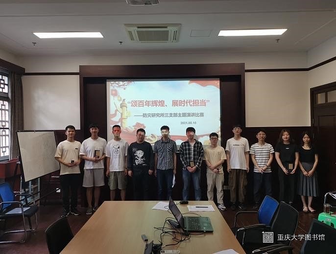 为庆祝中国共产党建党100周年,重温党的光辉历程,2021年5月10日下午14:30,重庆大学土木工程学院研究生防灾研究所三支部在土木工程学院第二报告厅(B区建工馆三楼301室)开展了以“颂百年辉煌,展时代担当”为主题的演讲比赛。