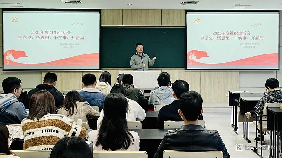 为深入学习贯彻习近平总书记在党史学习教育动员大会上的重要讲话精神,2021年4月7日晚,重庆大学经管学院综合研究生二支部在A区经管楼210教室开展了“学党史、悟思想、办实事、开新局”专题学习交流活动。此次活动重点从总书记对党史学习提出的“学史明理”和“学史力行”的要求出发,搭建历史与创新的桥梁,鼓励党员同志“学党史不忘初心、话创新争创一流”。