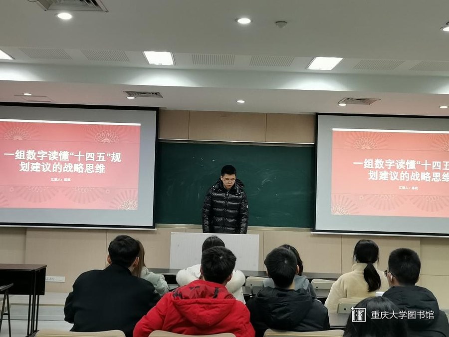 2020年12月11日晚7点,为了使同志们全面了解“十四五”规划的起草情况和战略思维,重庆大学经济与工商管理学院专硕三支部在A区经管学院楼204教室开展了以“一组数字读懂‘十四五’规划建议的战略思维”为主题的组织生活会议。本次会议由陈乾同志主持,纪委委员常宝龙老师到场参加并指导,支部全体党员及入党积极分子近30人参与了本次活动。