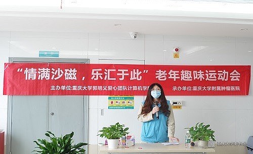 为了弘扬社会主义核心价值观,倡导我院广大研究生尊老、敬老、爱老、助老的精神,重庆大学郭明义爱心团队计算机学院分队于2020年10月29日在重庆大学附属肿瘤医院内科开展了老年趣味运动会。