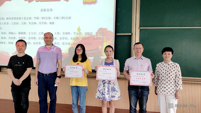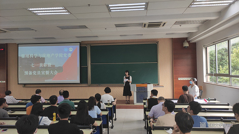 2020年7月2日下午3点,管理科学与房地产学院党委“七一”表彰暨预备党员宣誓大会在重庆大学B区第二综合教学楼518顺利举行。出席本次大会的嘉宾有管科学院党委书记严薇、党委副书记陈兰,党委委员刘贵文、叶堃晖、周滔、向鹏成、毛超,曾德珩及优秀党员代表王贵春、周晓东。本次大会由管科学院党委委员袁凡宁主持,进行优秀党员表彰和预备党员宣誓。