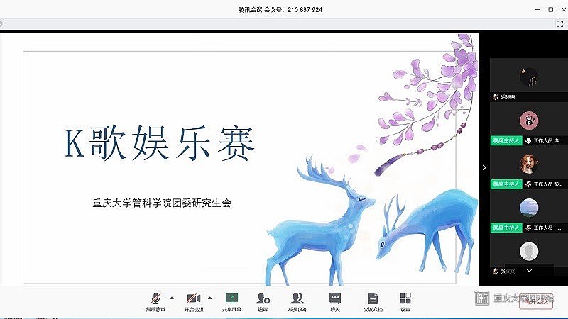 管理科学与房地产学院研究生趣味K歌赛于2020年3月13日—2020年3月17日成功举办。由于受到疫情的影响,本次趣味K歌赛活动的两个环节均以线上形式举办。虽然受到条件限制,但是本次比赛仍受到全院研究生的关注,共吸引30余名研究生报名参赛。