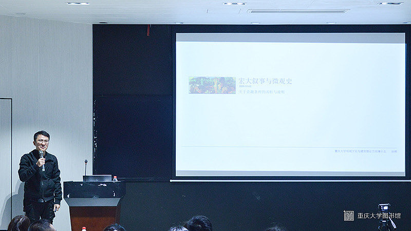 2020年1月2日晚上7点,由重庆大学建筑城规学院青年学术委员会和研究生会共同主办的第四场学术论文写作专题讲座——《宏大叙事与微观史:关于意趣条理的浅析与说明》在建筑城规学院建卒厅举行。本次讲邀请了建筑城规学院副教授冯棣作为主讲人,建筑城规学院徐辉博士作为特邀嘉宾。全院约200名硕士、博士研究生参与了本次讲座。