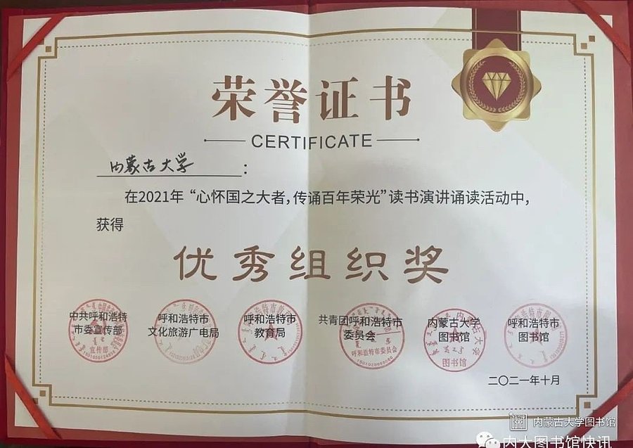 喜报 || 内大图书馆荣获“心怀国之大者,传诵百年荣光”读书演讲诵读活动优秀组织奖-18