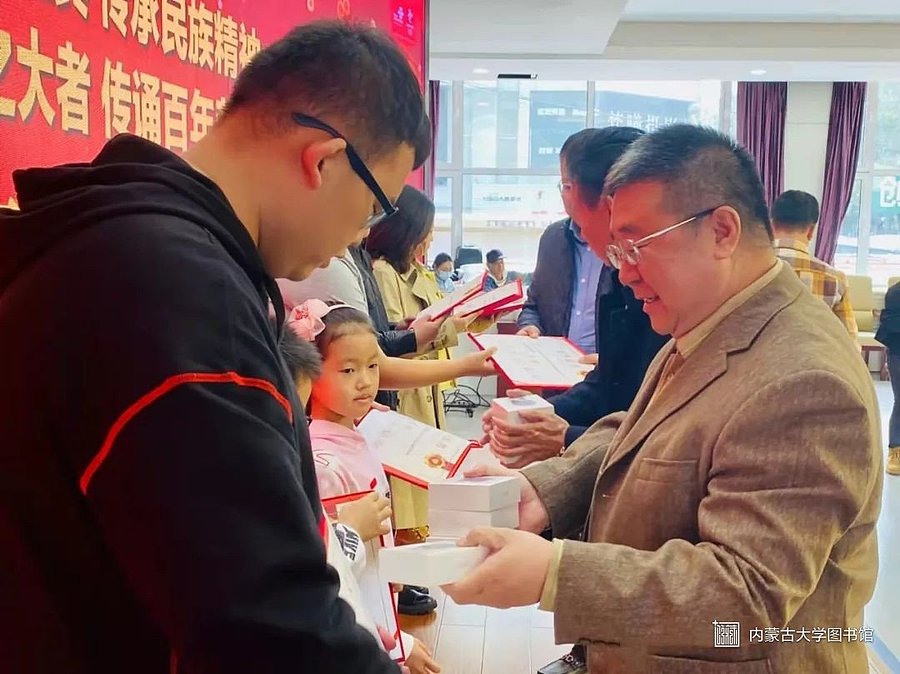 为庆祝中华人民共和国成立72周年,10月10日上午,在呼和浩特市图书馆一楼多功能厅特别举办了“心怀国之大者,传诵百年荣光”读书演讲诵读活动颁奖仪式,为所有获奖的选手们颁发属于他们的荣誉。获得本次大赛各个组别一等奖的选手们现场表演了他们的获奖作品,三位评委老师也分别作为表演嘉宾为活动献上了自己的精彩朗诵。仪式进行过程中,我们还特别邀请了土左旗乌兰牧骑的演员们为大家献上了精彩的演出。最后,本次颁奖仪式在蒙古族器乐合奏《俊马赞》的精彩表演中圆满结束。
