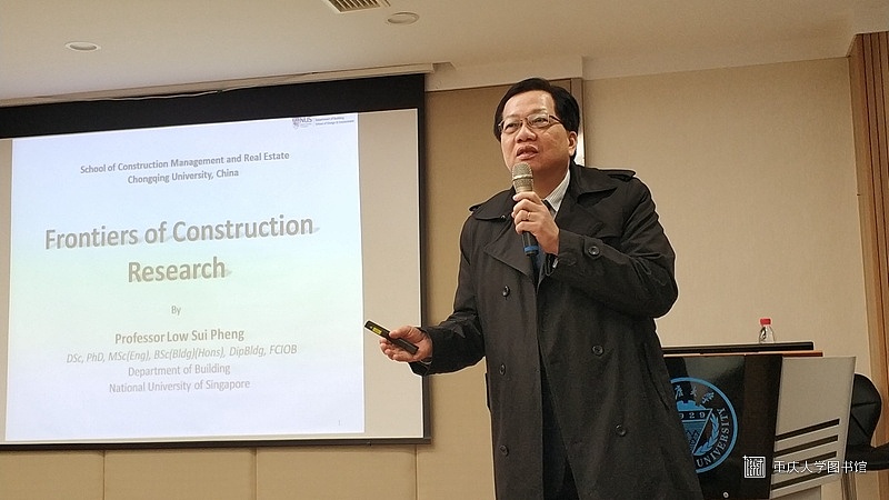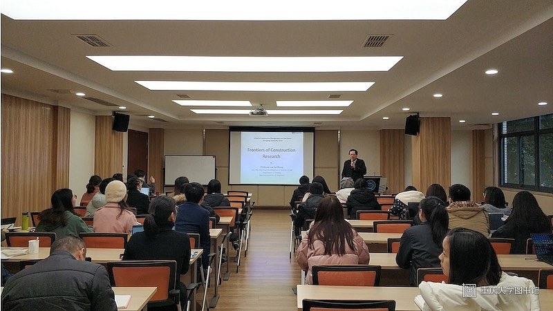 2018年12月12日下午3点,由重庆大学建设管理与房地产学院主办,建管学院团委研究生会承办的“卓越论坛”系列讲座在建管学院楼210室举办。本次讲座的嘉宾为新加坡国立大学设计与环境学院建筑系教授Low Sui Pheng,本次讲座的主题为:建设研究前沿。参加本次讲座的还有学院的部分老师、博士生及硕士生。