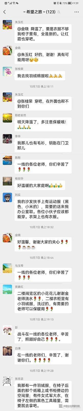 一方有难,八方支援,人间自有真情在。向时刻关心我们身体健康的刘云昌老师表示衷心感谢!向关心和帮助我们的同事们表示衷心感谢!向所有伸出援手帮助我们的单位和朋友表示衷心感谢!你们的善举必将凝聚起战胜疫情的磅礴力量。我们坚信在各级党委和领导的坚强领导下,在各界人士的帮助下,在全体内大人的努力下,疫情就会过去,曙光终会来临。