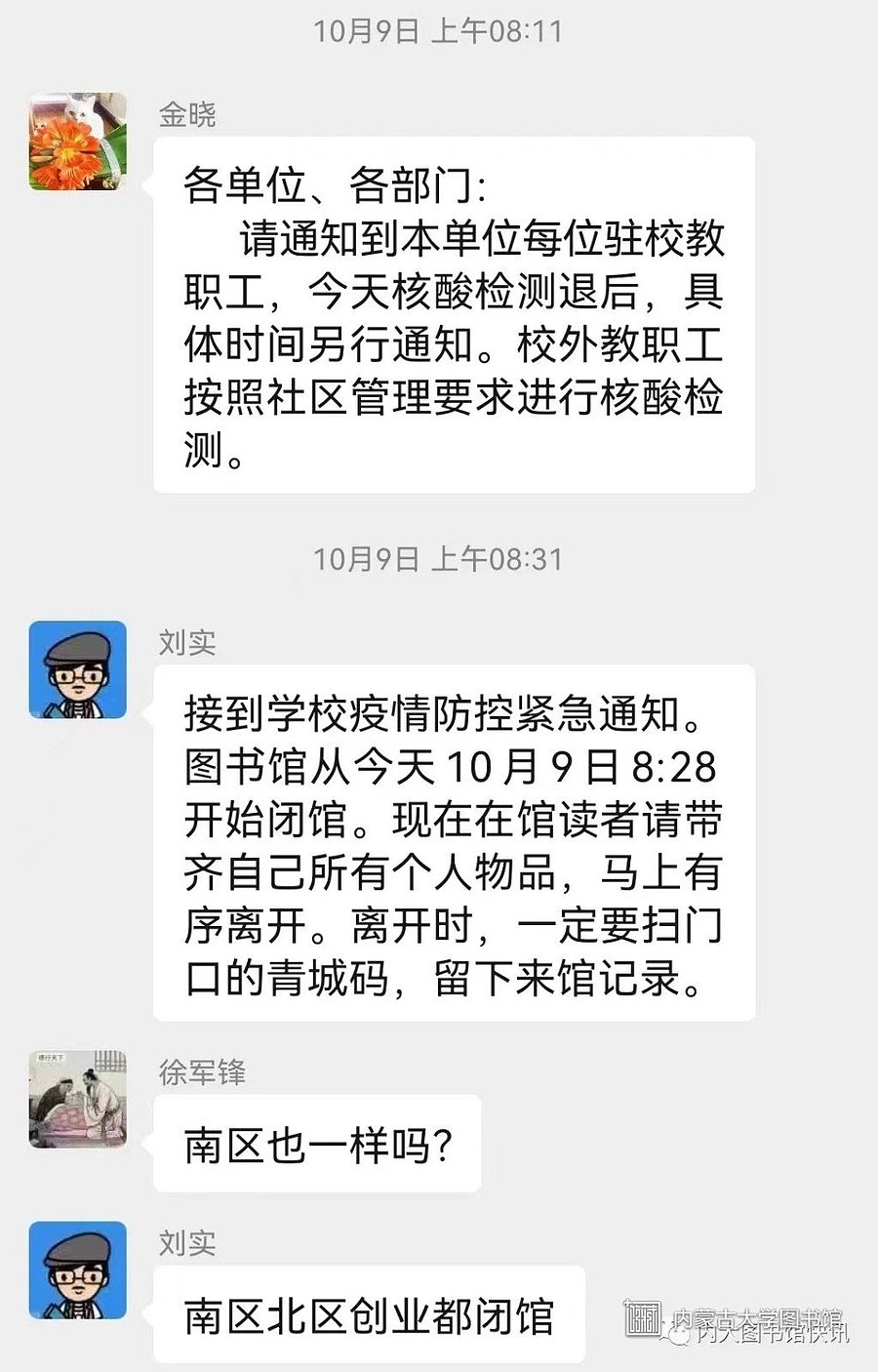 10月9日,图书馆按照学校疫情防控要求开始闭馆,学校四个校区全面实行“学生不出楼,统一送餐到宿舍”的封闭式管理。全校静默,驻馆老师们开始无接触为学生提供服务,他/她们又开启了新的工作模式。