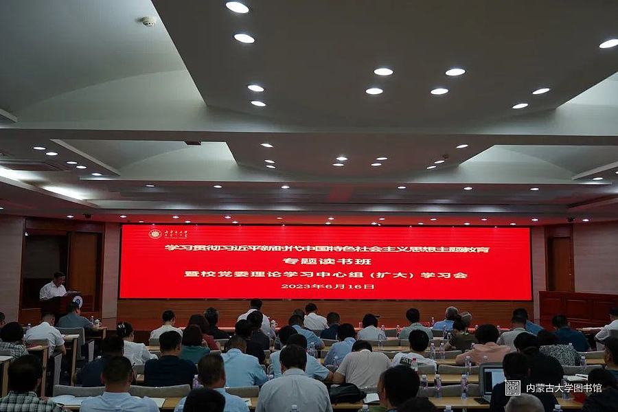6月16日下午,我校在学术会议中心8号会议室举行学习贯彻习近平新时代中国特色社会主义思想主题教育专题读书班第十一次集体学习暨校党委理论学习中心组(扩大)学习会。自治区党委主题教育第十二巡回指导组组长杨春山、联络员关瑞宁到会指导,校党委书记刘志彧主持,校长武利民,纪委书记、监察专员张利平,副校长刘永斌及全校副处级以上领导干部参加学习。