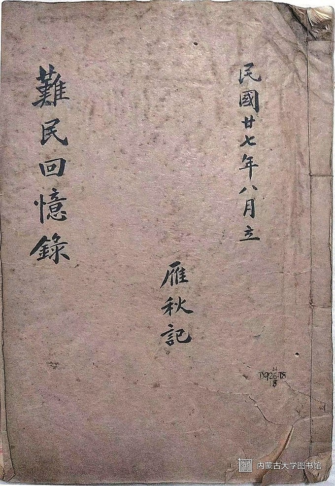 这本《难民回忆录》是黄静在南大文学院图书馆特藏库中发现的。“最初发现这本书,是在去年冬天。”黄静告诉记者,自己作为该馆工作人员,打算对特藏库资料目录数字化,“当时我发现一本薄薄的线装册子,油纸封面端端正正三列手写体,从左至右分别是:‘难民回忆录 雁秋记 民国廿七年八月立’。”