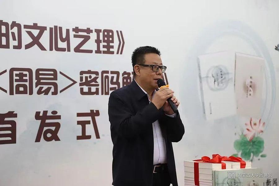 内蒙古大学出版社社长姜德军在讲话中说,林先生在深入研读《管锥编》的基础上,围绕着“《管锥编》的文心艺理”这一主题,从中提炼出28个论题,钩深致远,撰成本书。图书装帧精美,尤其是封面设计雅致大气,寓意深刻,远山淡水由远及近,象征文心艺理的文化源远流长;莲篷籽多叶肥,象征文心艺理研究硕果累累。两圆相交代表《管锥编》作者钱锺书先生与本书作者林先生的心灵契会,中间相交集的“文心艺理”就是两位先生共同开掘的学术理想镜像。《乾坤藏史策——<周易>密码解锁》一书是郎宝如先生多年学术研究的硕果,以一种全新的视角,开创性地走普及化大众出版的路子,能够多方位地满足专业研究和普通文史爱好者的阅读需求。这两本书作为内大出版社的精品出版工程,其所具有的价值和意义,值得我们大力宣传和推介。