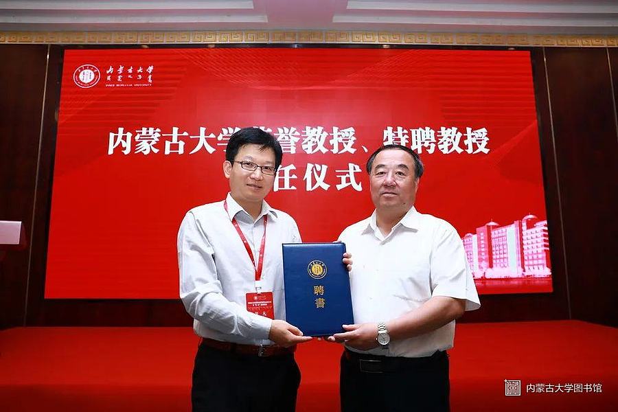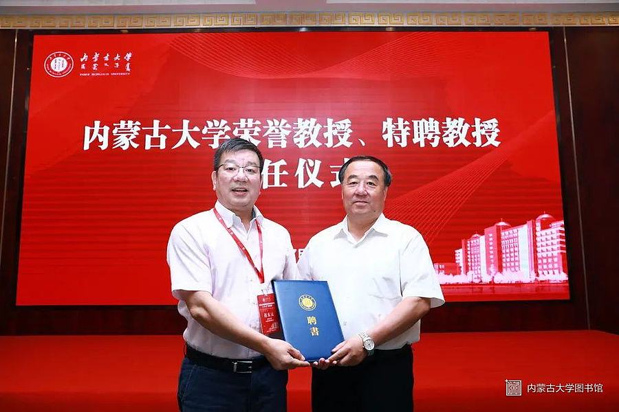 赵东元院士代表受聘教授讲话。他说,复旦大学和内蒙古大学有着深厚的历史渊源和兄弟般的情谊,能够受聘成为内蒙古大学特聘教授感到非常荣幸,饱含着一份真情投入到未来工作和学校事业之中。他表示,内蒙古大学化学、材料学学科基础扎实,内蒙古自治区矿产资源丰富,能源材料产业前景广阔,化学、材料学学科作为关键领域,与地方经济发展密切相关,作为内蒙古大学的特聘教授和能源材料化学研究院院长,一定会发挥能力和所长,在重大科研项目谋划、重大科技创新平台建设、青年人才引育等方面提供指导和帮助,为学校“双一流”建设和化学、材料学学科的建设发展做出自己的贡献。