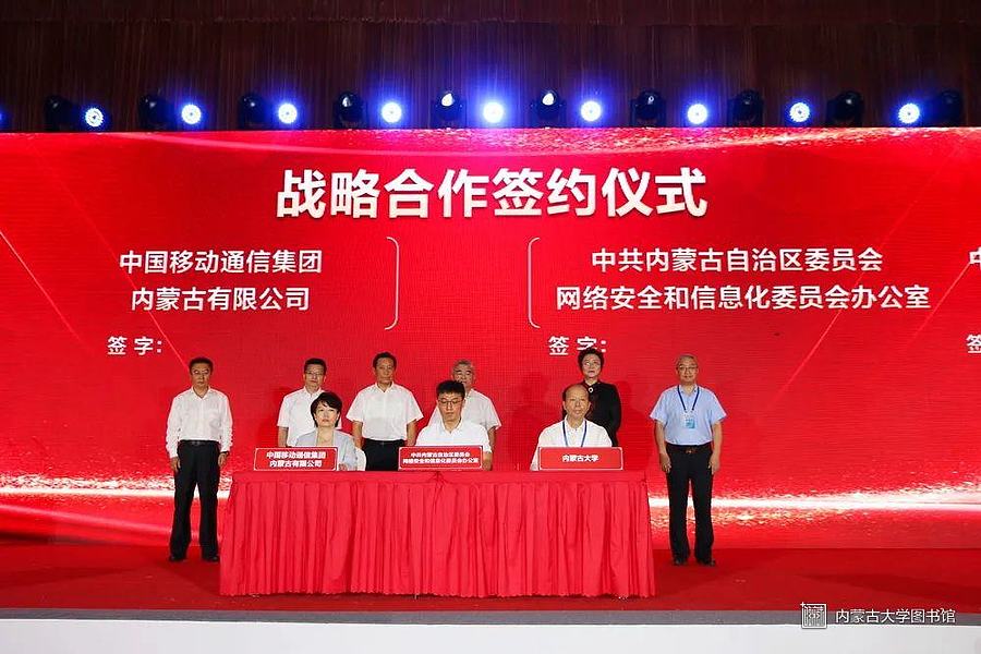 我校副校长高光来与中国移动内蒙古公司党委委员、副总经理马冬梅代表双方签署了内蒙古大学与中国移动内蒙古公司战略合作协议。
