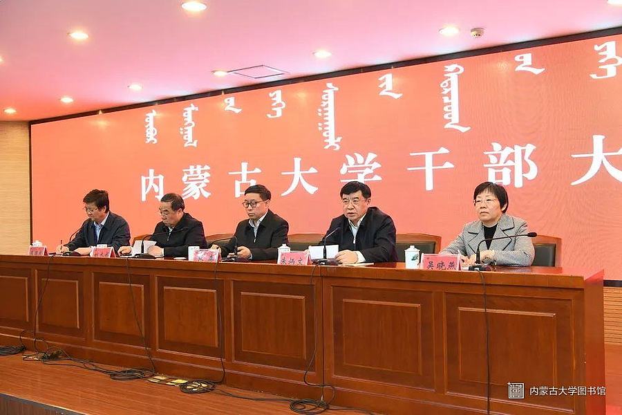 4月30日下午,学校召开全校干部大会,自治区党委组织部副部长张秦、自治区党委组织部干部四处处长吴晓燕到会宣布自治区党委对学校领导班子的调整决定:刘志彧同志任内蒙古大学党委委员、书记;朱炳文同志不再担任内蒙古大学党委书记、委员职务,于2020年1月任内蒙古自治区人民政府参事。